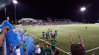 That night, I was at Toyota Stadium for the Saint Louis FC (http://saintlouisfc.com/landing/index) match against Tampa Bay Rowdies. It was a wild match, with Saint Louis taking an early 2-0 lead, then Tampa Bay scored three times to lead 3-2 at halftime. Saint Louis scored twice in the second half--the winner coming one minute before full time--to win 4-3. I joined with the St. Louligans (http://stlouligans.com/) in cheering on the home side.