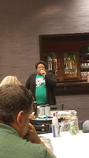 Waiting around for about 30 minutes, I found a place in the rear of the meeting hall for the wedding ceremony. My friends and Enterprise (https://www.enterprise.com/en/home.html) colleagues Justin and Hannah Bollinger were there. After Leah and Drake walked down the aisle for the first time as a married couple, we headed to the bar area. I got a beer after a considerable wait and waited until the meeting hall was reconfigured for the dinner. I made my way to the upstairs section, where I was assigned a table with the Bollingers and other guests. There was a buffet dinner and some nice conversation.