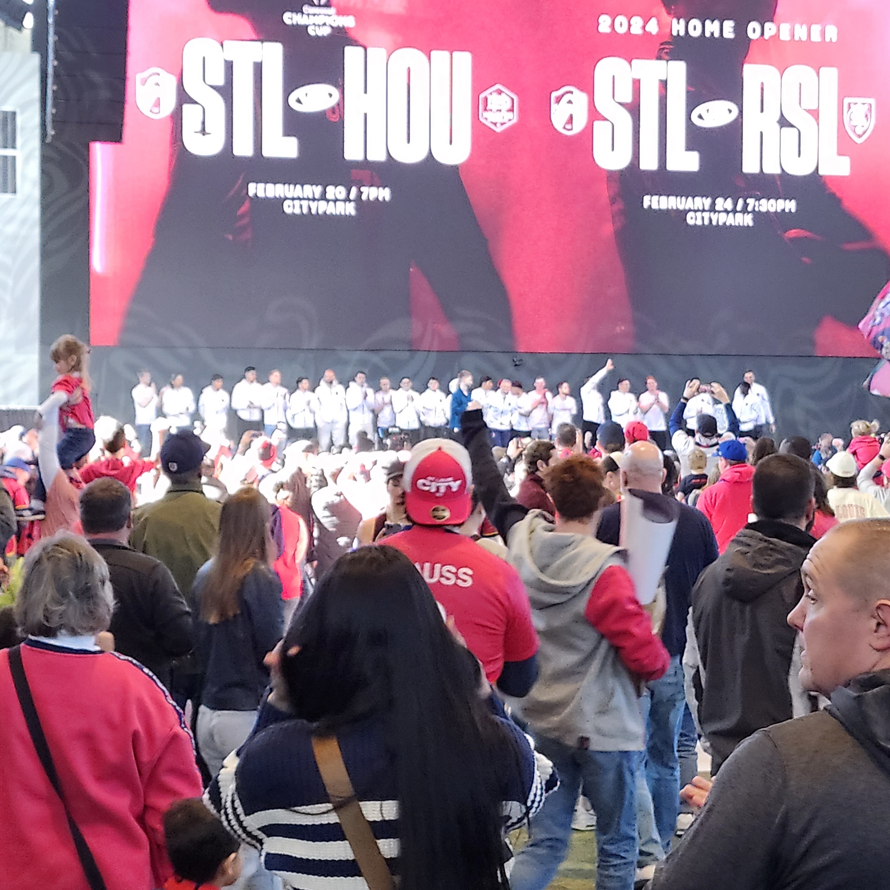 Yesterday (17 February), we went to the Armory for St. Louis CITY SC's Season Kickoff event for season ticket holders. When Julie and I arrived, Fleur de Noise and STL Santos were leading the various chants during the matches. There were many fans in attendance at this event. Some played the games at the Armory--Julie and I tried cornhole--and others enjoyed refreshments from the bars and restaurant. CITY sold souvenirs, including the new Confluence Kit--a white away shirt with CITY Red trim. Some kids did a bit of training under the CITY Futures program. The various supporter groups had information and merchandise tables set up: St. Louligans, St. Louis City Punks, STL Santos, Fleur de Noise, No Goal Patrol, and No Nap City Ultras.